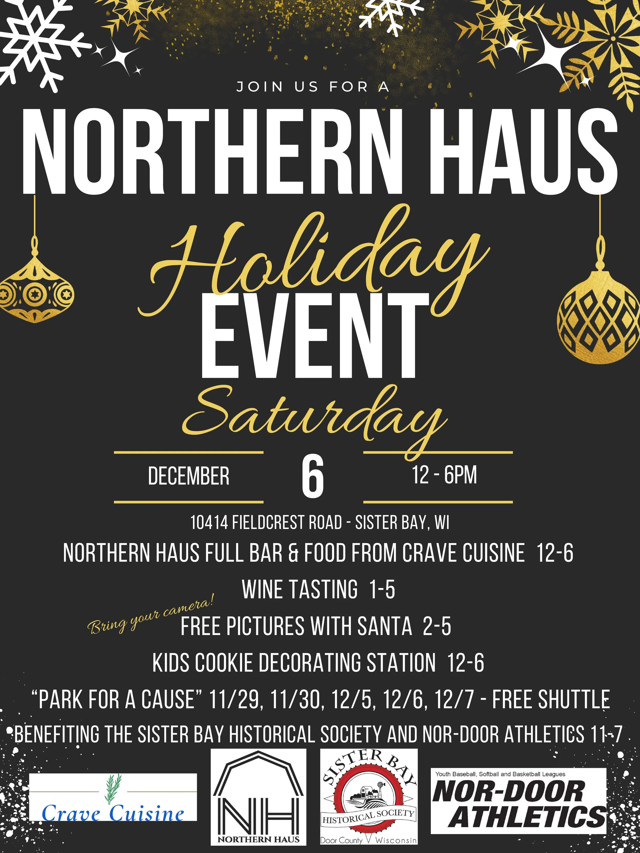Northern Haus Holiday Event Saturday, December 6, 2025 12:00 PM 6:00 PM 12:00 18:00 Google Calendar ICS